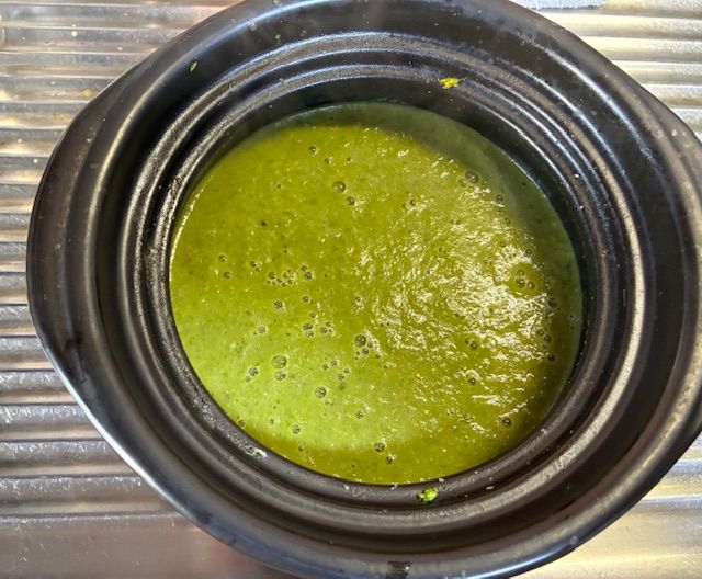 4年前から食道狭窄になり、錠剤はすべ粉砕。薬剤師さんからLINEで「お薬の準備に時間がかかります。 整いましたら、ご連絡いたします」お決まりのLINEを受けます。服用中は様々な質問がきます。 医師と連携。真面目に答え質問もします。 2月、鍋を焦がしました。鍋のそばに居たのにニオイもオトにも気づきませんでした。夫が飛んできた。 火を消した。私は完全栄養食作りを楽しんでいるところでした。事件です! それからは鍋の中をのぞき、水分量を見たり、タイマーを手中にして仕上がるまで椅子に掛けたり、 立ち上がり踵落としやスクワットを15分くらい。土鍋の蓋から蒸気が細く上がる。火を止め4分蒸らす。 私用のペースト食の下準備完了。 緑はケサヱ菜他野菜多種類。麹鶏むね醗酵バター入りどぶろくの米麹にうっとり!