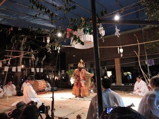 を押す。私も彼も良い経験になったと思う。暗くなって夜7時から神事、その後8時から
