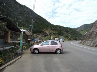レンタカーを借りて銀鏡に向かう。車は小型のマーチにしたが天井が思っていたよりも