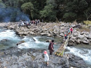 その後川原で「ししば祭り」があるというので出かける。イノシシの肉を神様に捧げこの一年間