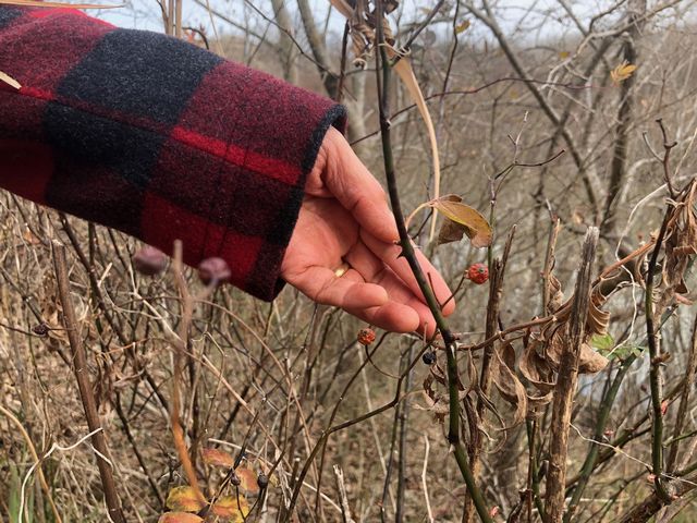 野ばらの実が熟し枯れている。集めると「ティー」になるのだろうか。