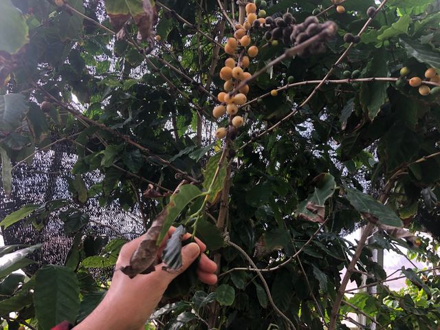 河川敷の帰りはコーヒー屋さんでゆっくりとお茶タイム。温室でコーヒーを育てている