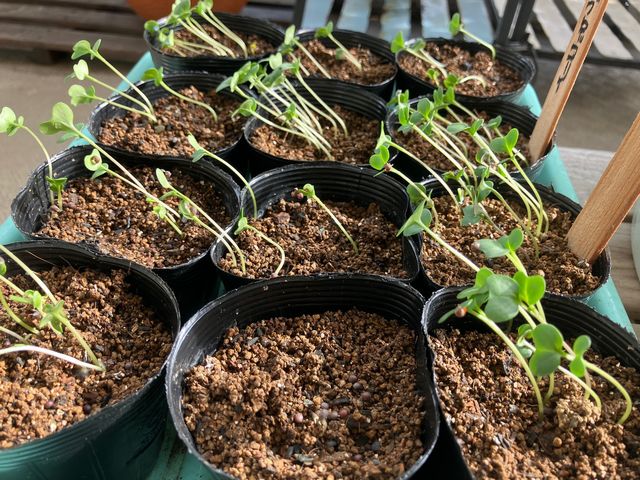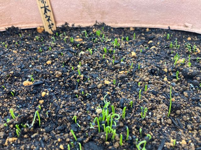 がいっぱい出てきた。先を考えてお皿から土に引っ越しさせた。