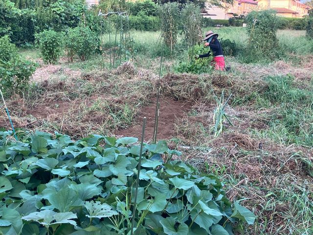 何週間も雨が降っていなかった。畑の伸び盛りの苗たちには時々水やり