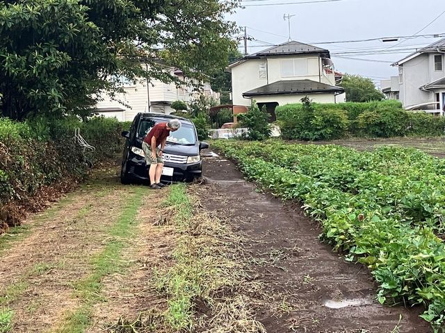 このところ車の予定しない出費が続いた。先日、畑に行く私道で雨のあとのぬかるみに