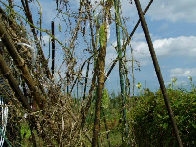 密集した葉を掻き分けると絹サヤがもうぶら下っている。