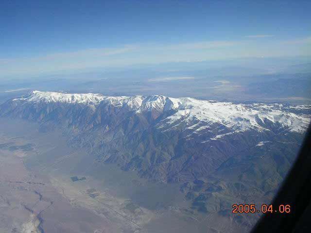ラスベガス空港を飛びたつと再び焼け焦げたような砂漠が続く。高い山には雪があり、その周辺に木々が生息している