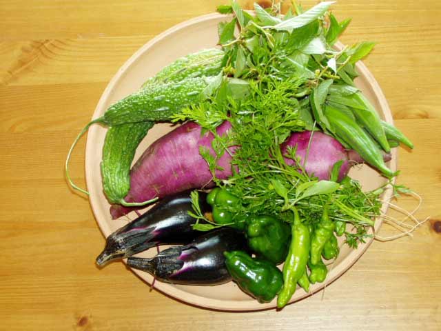 野菜が成長する時期は雑草の成長も早い。花の蜜を求めて蜂がブンブンうなっている。
