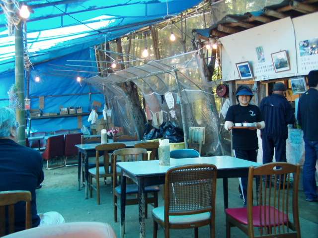 カエルの合唱。声の太さからするとヒキガエルと思われる。陶器市とあって陶器の店だけではなく