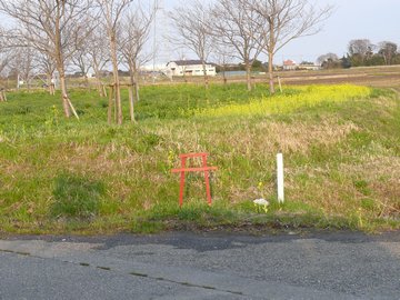 赤い鳥居 2010年3月21日 風が強かった。ニュースによると朝方には風速30メートルぐらいあったようだ。明るくなってくる 頃には大きく深呼吸するように時々風が弱まるようになり、そしてその間隔がだんだんのびて、やっと 静かな眠りとなった。起きてベランダを確認すると小さな植木鉢が横倒しになり土が飛び散っていた。 捜してみると離れたところに芽の伸びた球根が横たわっていた。急いで元の状態に戻してやった。 車で走るとプラスチックのチリトリや木の枝が道端にあるが、菜の花など一見弱そうな植物が元気だ。 先がだんだん細くなっていく釣竿のような構造は風をやり過ごすにはいいようだ。 天気は良くなってきたが今度は黄砂で遠くがかすんでいる。昔、家族で北京を旅行したときも空港に 着いた時からこのような景色だった。黄砂で煙る市内でも人々は元気に生活していた。 春らしい景色なので今井の桜を見に行く。蕾がぷっくらふくらんで開花も間もなくのようだ。 ドライブしているときにいつも気になっていた道端にある赤くて小さな鳥居を"Google"で調べてみる ことにした。地元に昔から伝わっている民俗信仰に関わるものに違いないと思い、キーワードとして 土着、民俗、信仰、結界などと入力してみたが、どうもそれらしい答えが出てこない。不思議だ。 そのうち「ごみよけトリー」という言葉が出てきた。何と「不法投棄防止グッズ」ということで販売され ているものらしい。そういえば人通りの少ないゴミの捨て易そうなところにあった。神聖な鳥居があれば ゴミを捨てないという人の習性を上手く利用していて結構効果が出ているとのこと。本物の鳥居と区別 するために水平になっている2本の柱は下側を長くしているらしい。長年不思議に思い民俗信仰に関わって いるものと思い込んでいたがゴミの不法投棄防止グッズと知って長年の疑問が解消した。