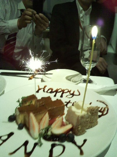 金曜日に飲み会に参加。途中サプライズがあり私の誕生日祝いのケーキが現れた。花火が消えないうちに