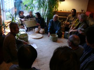 コーヒーを飲みながら世間話など。昔の道具集めに凝っている人が昔の目薬の容器を見つけたとのこと。昔の