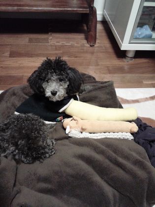 夜9時なかなか寝ないそらくんにメチャクチャ歌を歌ってあげる お背中のマッサージはいかがですかお耳のマッサージも ナデナデユラユラしているとそろそろ手の中の前足がホワッと 温かくなってきてそらくんは夢の中に入っていきそうだ やれやれ夜中に吠えると母ちゃんが叱らないといけない ベルトでバシッと椅子をひっぱたいて脅かしたりしても なかなかいうことを聞かないと長いリードと手を繋ぐ 集合住宅はとても気を付けないといけないんだから こう見えても甘やかしてばかりではなく結構厳しくしている 今夜は父ちゃんと鬼ごっこして餌を食べることが出来ない 父ちゃんは岩盤浴後うたた寝して風邪を引いてしまった 昼間からふすまをピタリと閉じて居るので夜になって そらくんがふすまの前にきちんとお座りしていてもダメだ ミニ柵が置いてあるから入れないと解っている 母ちゃんは寝かしつけの合間に自分の足のスクワットをやる はいネルネルねるねると音程を替えながら膝を横に前に曲げる するとあら不思議ギコギコ鳴っていた膝が滑らか気味になる 普段の生活の中でいろんな場所でなるべく体操を取り入れたいのだ そらくんはもう三歳半なのにこんな調子で子犬の餌が好きだ 小食なのでカロリー過多でも大丈夫らしいが大人の餌をまぜると 一粒ずつより分けるので器用というか腹が立つというか もう何種類も食べない袋が残っていて非常食期間も過ぎてしまう りんごちゃんはこんなことはゼンゼン無くて食欲派だった 部屋はフリーにしているのでだんだん普通の犬並みにソファに 飛び乗れるようになったしミニ犬用段差を器用に降りる 母ちゃんのベッドに乗り粗相したので空いている時には必ず 柵の大きいのを横たえておくと登らないので一安心だ 一時の隙もダメなので起きるとすぐに柵を載せなければならない もうじき2か月目のトリミングがあるので犬用水なしシャンプー を吹き付けてモミモミフワフワあちこち指櫛してあげるはいはい なるべく噛まない様になりなさい鼻の横の黒太髭が長いですね そらくんが優しく手の甲をなめてくれてキリッとした黒目が見上げる 高い犬アレコレのオカゲデ母ちゃんは美容院カット3カ月1度になった 温かい犬の体から優しいパワーが伝わりお世話させていただきますよ と言いながらそらくんが一番苦手な後ろ足の上の方をそっと触る さあ今日は雨の後で気温も上がるらしいから大好きなお散歩に行こう