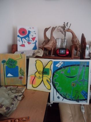 以前は具合が悪くても銀座画廊数軒やたまに美術館やら回り横浜の 絵画教室まで8年近く通っていたのが信じられないくらい体力が 落ちたような気がする。古希を越えると丈夫な人は益々元気になり 病持ちはそれなりにガタガタアチコチ問題が起きる。友人達とは 常に病気自慢である。私の方がこんなにアチコチ悪いんだからと。 美術館で自分の絵に合い正直な所びっくりした。今年のルールは コロナで特別で在りそれならば思い切り自分らしくと思い描いた。 1年間絵画教室に置いて時間を掛けて相談しながらの絵では無い。 指導して下さる先生に対して厳しすぎると思ったりしたモノだが ここに来てふーむさすが大先生だと家人と話した。先生を離れて 描ける様にならないといけないと言われていた。 自分の絵画言語を駆使して描かないといけないのは当然である。 しかしどれが私の言語かと迷うと色々描いてみないと解らない。 ピタリとハマルトおおこれがそうだったのかと感動する。 美大で色々試した人は成功したりそれでも成功しなかったりだ。 間違いなく絵が好きで事ある毎にチャレンジしてきたが自信が イマイチ無かったのである。 俄然来年に対しての大きな意欲に燃えている。 美術館に行く電車内で優先席に座りながら隣でラップに包んだ おにぎりをぱくつきマスクもし無い学生女子がいかに周囲の冷眼 にさらされ向かいの高齢者に睨み付けられ、居眠りする振りを をしていてもドンドン肩身が狭くなる様子を見て複雑な気持ちだった。 家人がショイカーゴで購入してきた栗を栗ご飯にするのに曲がり 始めた指先を痛め腰も痛めこれは今年でお仕舞いと家族に宣言した。 春のタケノコご飯の方は多分まだ大丈夫だろう。キノコご飯やらも 在る。トウモロコシご飯も簡単美味しそうである。 レミさん風がお気に入り。 台風接近の為か珍しく後頭部がズキズキと痛む。頭痛持ちの姪っ子は 何時もこんな風なのかと思いやった。先日胃カメラ検査の時に新しい 主治医に今日は当直だから何か心配だったら電話して下さいねと 言われてびっくりした。地域密接型中核病院だからか、嬉しかった。 そらくんを抱っこしながらアレコレ色々話すと母ちゃん胃が悪いん じゃないのとしつこく息を嗅ぐ。何やら感知力が見える頼もしさだ。 そう言えばインドネシアで安いから週一位で通っていたマッサージ 後に渡される紙にも胃と腸が問題だとあった。 台風に備えて痩せこけた我が鉢植え植物達を居間に運び入れる算段 に忙しい家人である。ヤハリもっと整理しないといけない様だ。