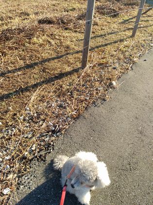 目覚ましちび犬が毎日母ちゃん行こうよと頼もしい。![]()