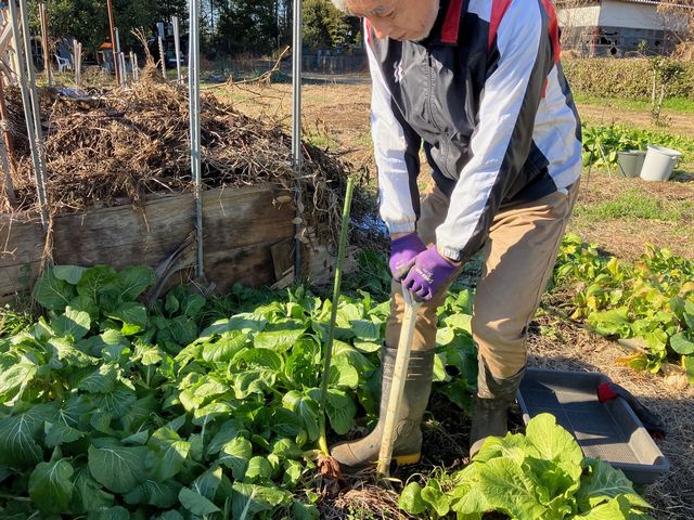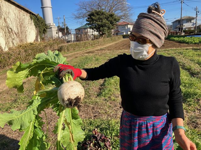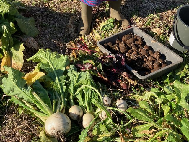 ビーツ、カブ、ダイコン、ケサエ菜を収穫。