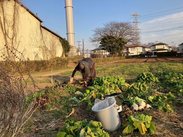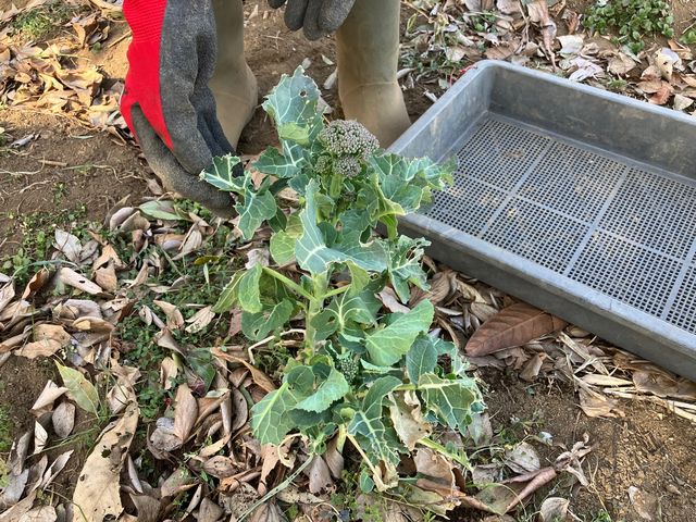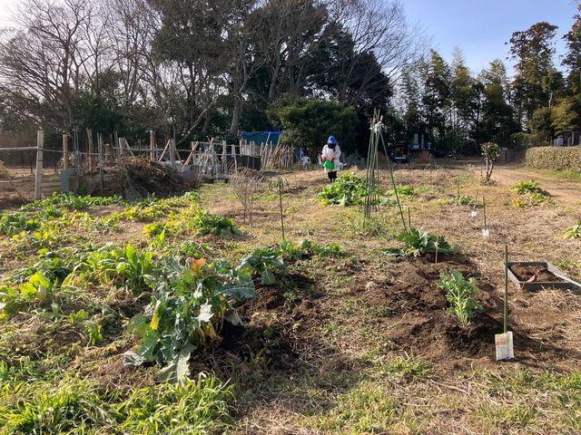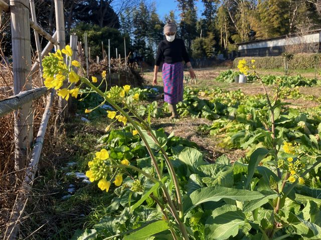 冬の畑は野菜の種類が減って少しさみしいものだがケサエ菜は根付いて花を咲かせることが