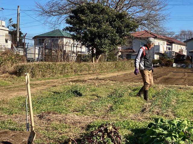 晴れ。畑に向かう。道路の日陰にはまだ2日の夜の雪が残っていたが畑の日陰にも