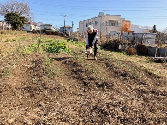 そこに種を蒔いて、その上に枯れた雑草を被せておいたが風が吹いて飛んでしまった