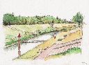 てました。コーヒーショップの自転車置き場にあったユーモラスな警告板。雉かと思われる畑に