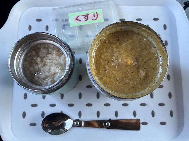 治療困難な自己抗体粘膜系の病に罹り、普通食を摂ることができなくなりました。 三年前からペースト食を食べています。管理栄養士さんのアドバイスを得ながら 栄養成分表を見たりして時間をかけて土鍋でグツグツして作っています。 2合炊用土鍋とスープジャーとブレンダーは三種の神器。メニュー、体重、3行日記も 兼ねて手書きノートしています。あとで書こうと思うと食事内容も忘れている始末。 3行日記も体重も必須。パソコン入力よりもペンを持って書く。万年筆で書いています。 判読不明の時もあります。でも書くことが一種の生活ケジメに。来年のノートを買いました(^^)。 このようにしてスローフードはペースト食のことなどもアップします。面白がって いただけると嬉しいです。 昨日、公園歩きのあと、車内で。 夫の「そらまめ」は コンビニのおにぎりとサンドイッチ。持参のミカン。![]()