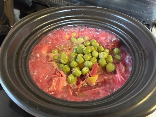 公園は子育て世代がシートに座って食事していました。シニア世代は椅子にテーブル。 なるほどです。シニアにはシートはスーッと立ちあがれないなあ、と思ってしまいました。 アハハハ。 先月のお昼。ビーツの酢漬け、えんどう豆などを使ったペースト。写真は管理栄養士さんに 写真を提示してアドバイスを得る為、ブレンダーにかける前の具材説明。