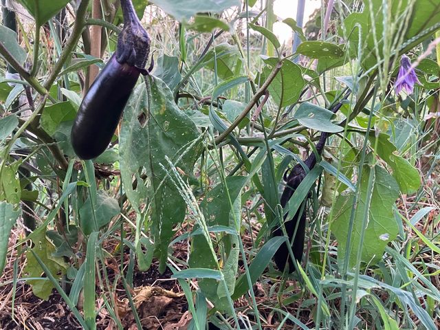 ナスやピーマンも元気になり豊作状態だ。ニガウリは終了に近い。こぼれ種から芽をだした