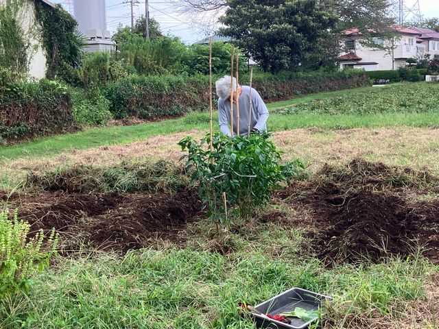 年々、しゃがんでやる作業ができなくなってきた「そらまめ」とまだまだ元気な「くろまめ」。