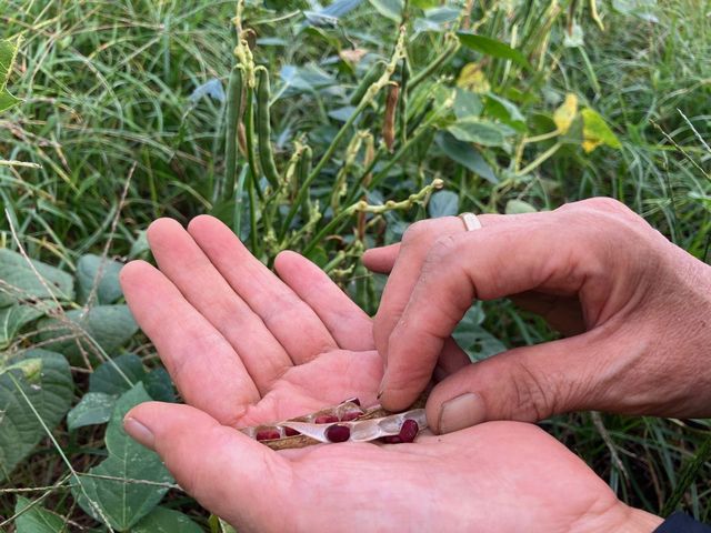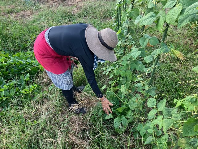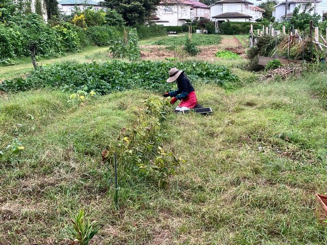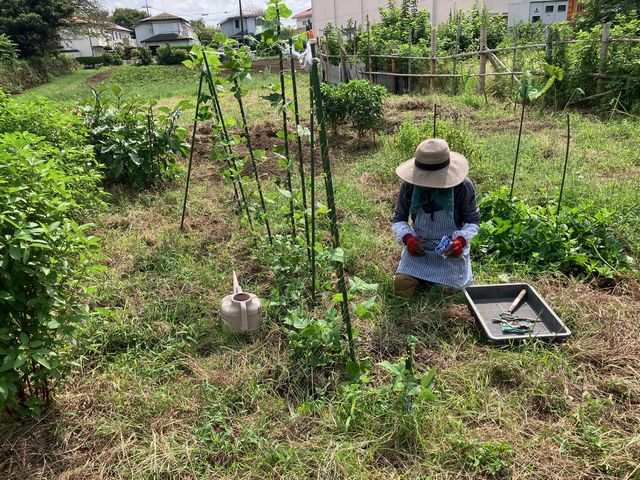 時間差で実っていくらしいので畑に来るごとに茶色になったサヤをとっている。