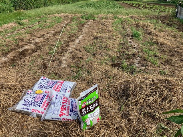 残骸を残していたが抜いて発酵鶏ふんを入れた。