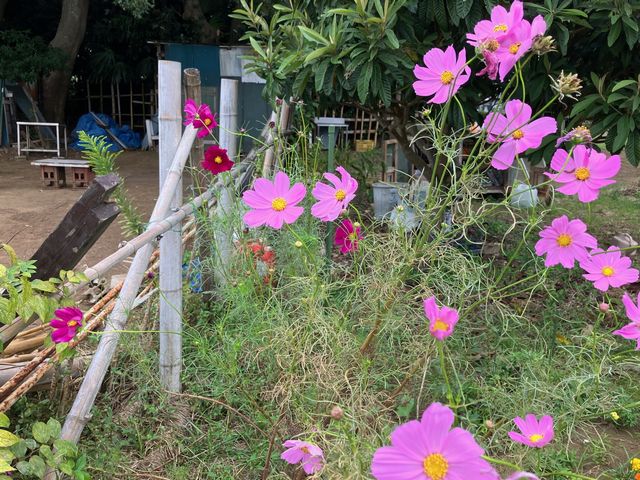 ひん死の状態だったコスモスが元気になり花が咲き始めた。倒れかかっていたので