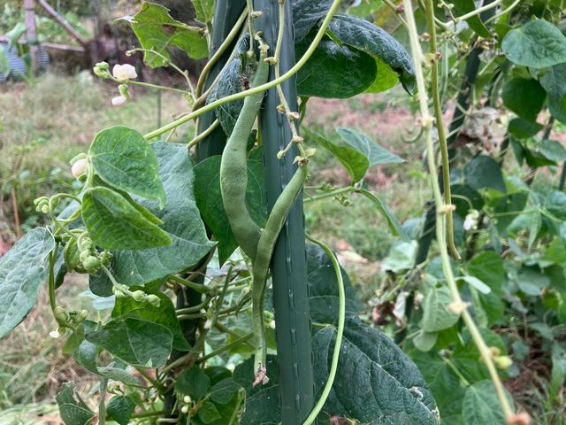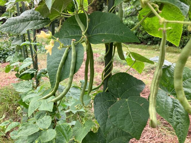 インゲンに花が咲いたと思っていたら実がぶら下がっていた。収穫。