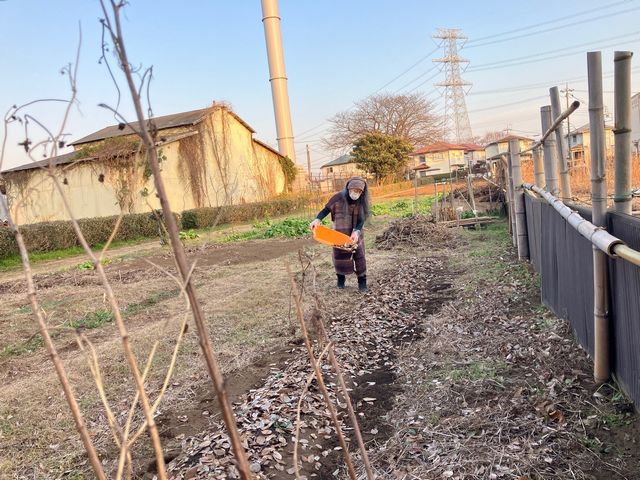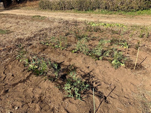 している苗が隣の畝にあるので間引きがてら移植をしてみたい。枯れ葉と不織布で寒さ