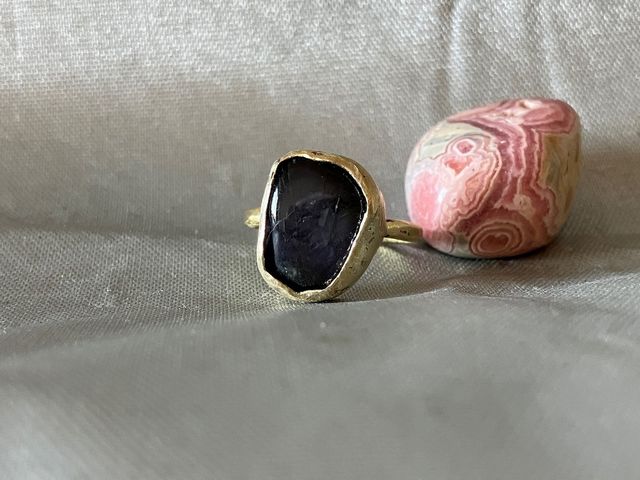 最近入手したデュモルチェライトインクォーツやアイオライトで早速指輪を作った。