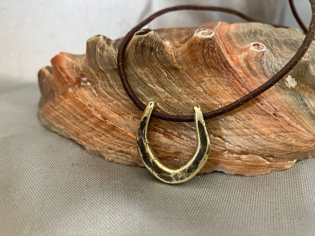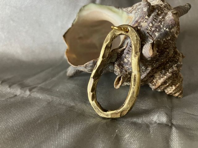 真鍮のリングを捻って叩いてペンダントトップにした。
