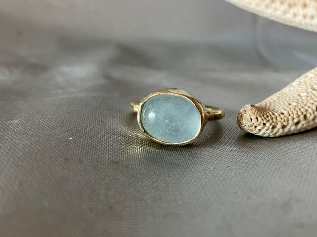サンストーン、アクアマリン、レインボームーンストーンで横向きの石の指輪を作った。